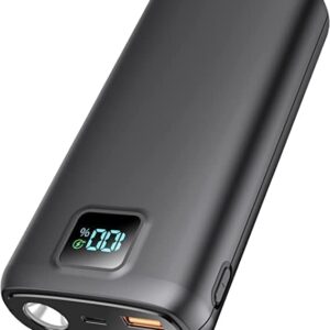 Power bank portable charger built-in high-precision smart LED digital display can accurately reflect the percentage of remaining power. Allows you to easily track your battery status.There is also a built-in super bright flashlight, it can dispel the darkness, very practical.Power bank is also equipped with a high brightness flashlight with 360 lumens. With the large battery capacity of the portable charger itself, it can go on for a long time to dispel the darkness for you.