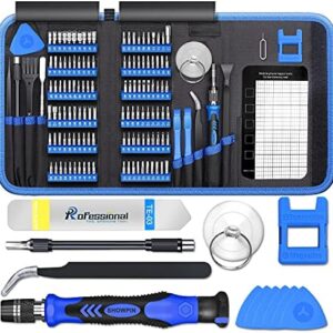 【With Professional Storage Case and Magnetizer】This computer tool kit comes with a shockproof plastic storage box, each screwdriver bit is well placed in the corresponding slot, easy to find and store. The included magnetizer can easily enhance the magnetic properties of the screwdriver bit. The 5.7*3.3 inch magnetic pad can absorb small screws and tiny metal parts, no worry about losing screws, or damage electronic components due to strong magnetism.