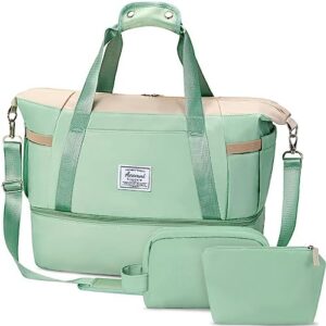 ✅【Dry Wet Separate Duffel Bag】:This duffle bag for women delivers roomy main compartment to store your clothes and items. A zippered waterproof PVC lined pocket for wet clothes or towels and swimsuits. In addition, this travel duffel bag also gives an extra small makeup bag for easy storage.
