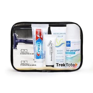 Essential Travel-Size Toiletries and Accessories! Travel light with our TrekTote kit. Stay fresh and prepared with grooming and oral care essentials, conveniently packed for your journey. From grooming supplies to oral care necessities, everything you need is within reach.