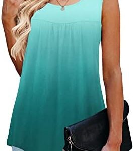 Casual sleeveless tunics style, scoop neckline, pleated design in the front, flowy loose, flared fit, dropped back hem for enhanced coverage.