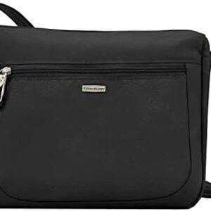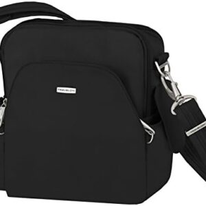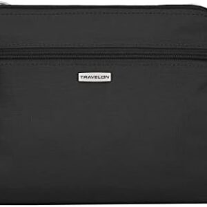 This Travelon Anti-Theft Classic E/W Crossbody bag is the perfect go everywhere bag. It features a roomy main compartment with RFID blocking card and passport slots, an open top pocket, zippered wall pocket and a tethered key clip with LED light. Front and rear zippered pockets are perfect for quick grab items and a smart phone. Travel securely and confidently with Travelon’s anti-theft features including slash-resistant construction, locking compartments, slash-resistant and locking straps to keep you and your belongings protected.