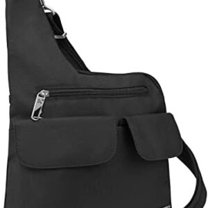 Navigate the city with this exceptional commuter and travel backpack. The Anti-Theft Urban Sling combines clean, modern design, 5-point Anti-Theft security system and thoughtful organization for all your tech. Constructed from durable polyester fabric with gun metal finish hardware, these bags will hold up to daily wear and protect your essential gear. Stop watching your bag and look up to see the world in front of you. Our built-in 5-Point Anti-Theft security system will protect your valuables from pickpockets and thieves. The Anti-Theft Urban Sling includes a slash-resistant mesh barrier in all 4 sides and bottom body panels; slash-resistant and lock-down strap; locking compartments; and RFID blocking organizer. Pack your bag with peace of mind, when you own a Travelon bag.
