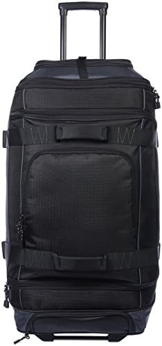 Wheeled duffel in black for traveling in comfortable, convenient style