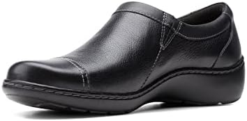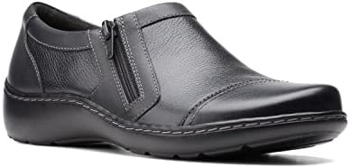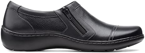 Clarks women Cora Giny: An upper made from full grain leather and a vibrant, printed textile elevates the Cora Giny casual slip-on style. A subtle zipper closure allows for an easy yet secure fit and, its Ultimate Comfort features include an Ortholite footbed that wicks away moisture and reduces the impact of each step.