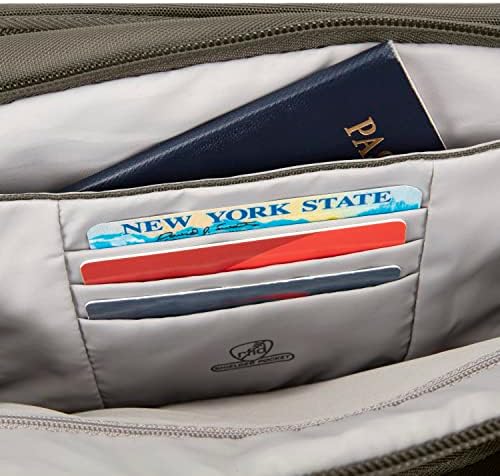 Protect your belongings from pickpockets and slash-and-grab thieves with the anti-theft travel bag from Travelon. Featuring hidden, slash-proof, chain link construction and an adjustable, cable-reinforced, cut-proof shoulder strap. The roomy main compartment features a locking zipper and pockets for organization. The rear organizer includes slots for credit cards, and pockets for travel documents. The zippered expansion pocket holds a camera, water bottle, or sunglasses.