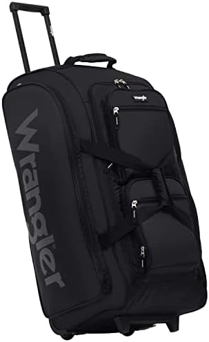 Wrangler 30″ Upright wheeled rolling travel duffle bag with more packing space than luggage. Best use for long vacations and family trips.