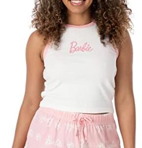 PASTEL PINK BARBIE LOGO DESIGN – The adorable ladies’ nightwear set comes in white and pastel pink featuring the iconic Barbie doll’s logo across the vest top and shorts making the set a must-have for any Barbie enthusiast!