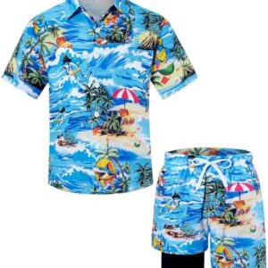 【NOTE】Machine washable. US size. The shirts and shorts are sold together, please check product description before ordering these mens beach shirts outfits to ensure accurate fitting.