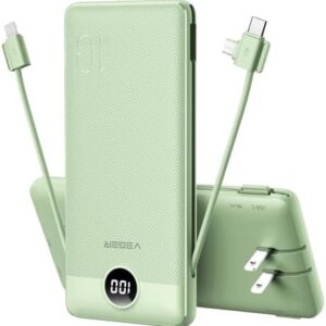 All in One Portable Power Bank: Portable battery pack with built-in cables and AC wall plug will make it easier while charging, great choice as a battery backup for your cell phones, take it as your traveling essentials.