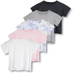 HIGH QUALITY: This short sleeve t-shirts are soft and comfortable; Choose between fun Reebok logo graphic prints and colors like grey, peach, blue, white, pink, tie dye, and camo; Find the look that fits her style